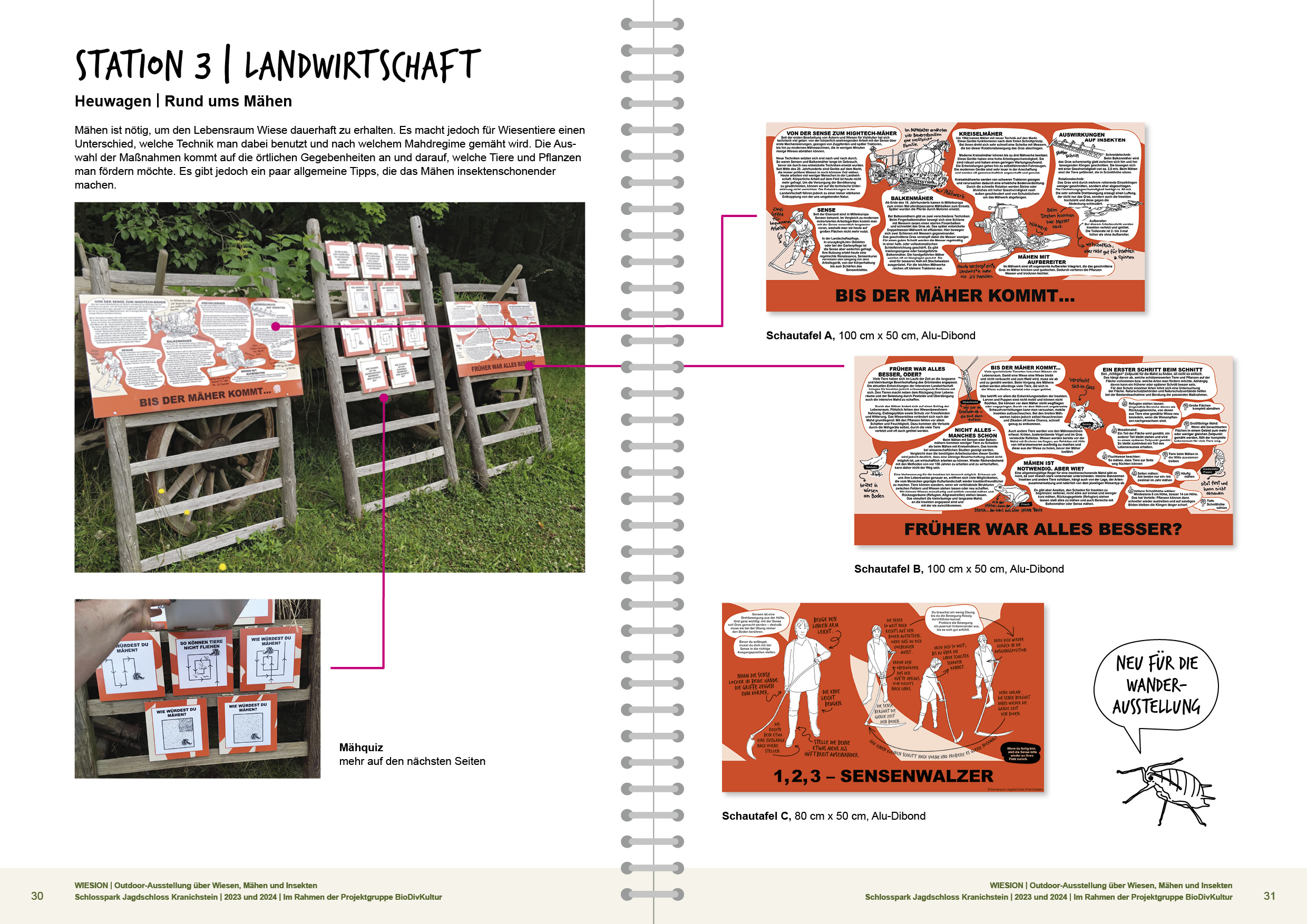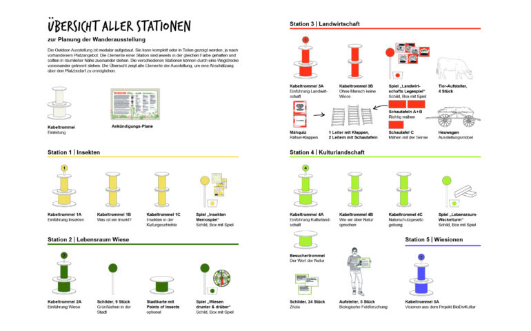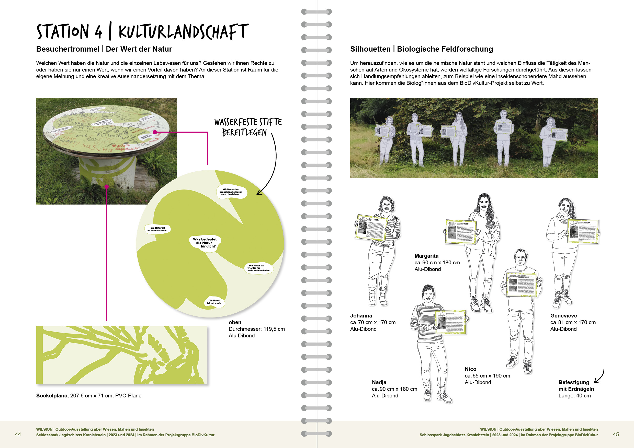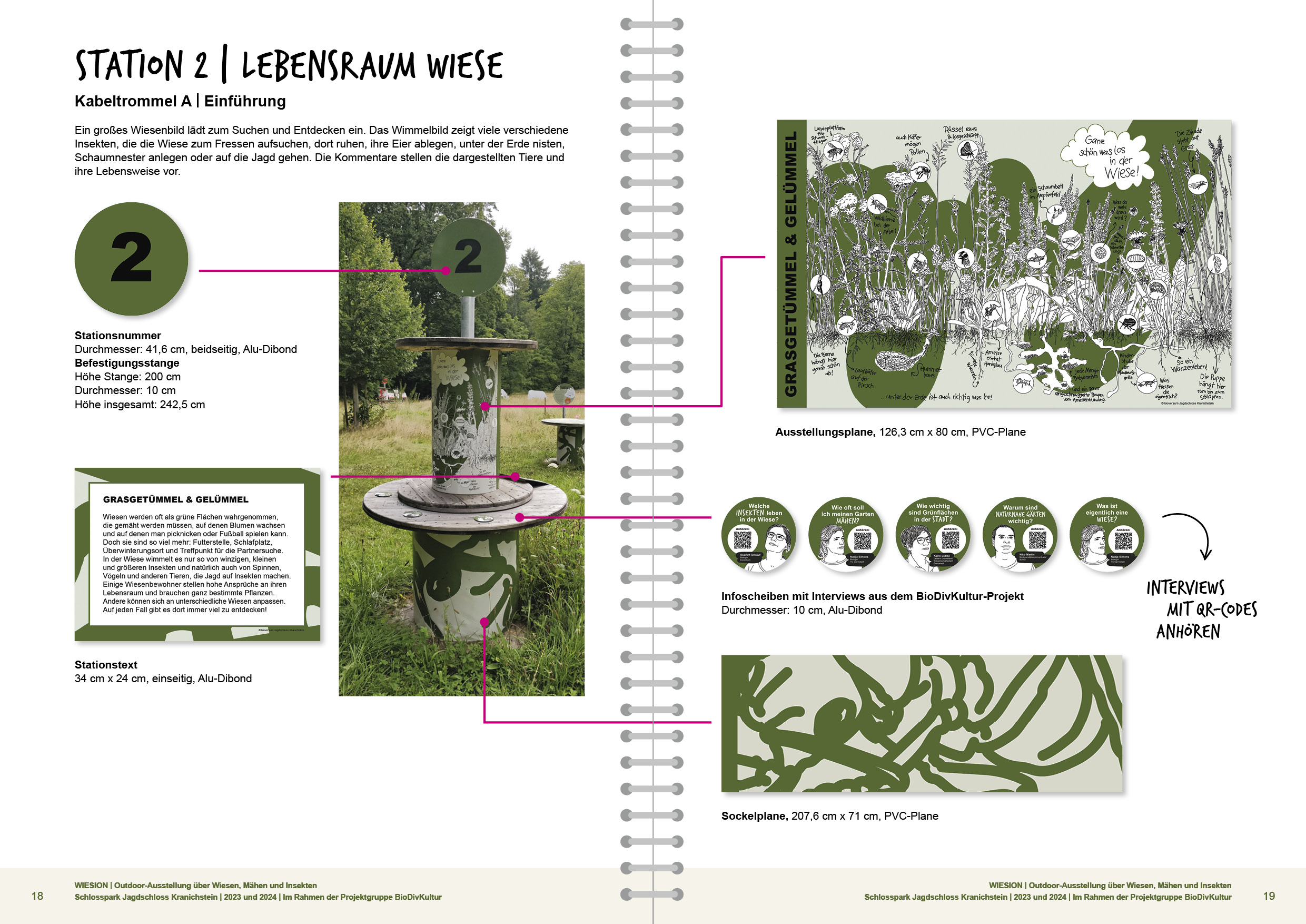 Neben dem bioversum Jagdschloss Kranichstein waren am Projekt BioDivKultur auch das Umwelt- und das Grünflächenamt der Wissenschaftsstadt Darmstadt, der BUND Darmstadt und der Landschaftspflegeverband Göttingen als Praxispartner beteiligt. Bei der Konzeption der Ausstellung wurde die Expertise der Projektpartner*innen aus den verschiedenen Bereichen zusammengebracht und durch Grafiken für ein allgemeines Publikum verständlich aufbereitet.