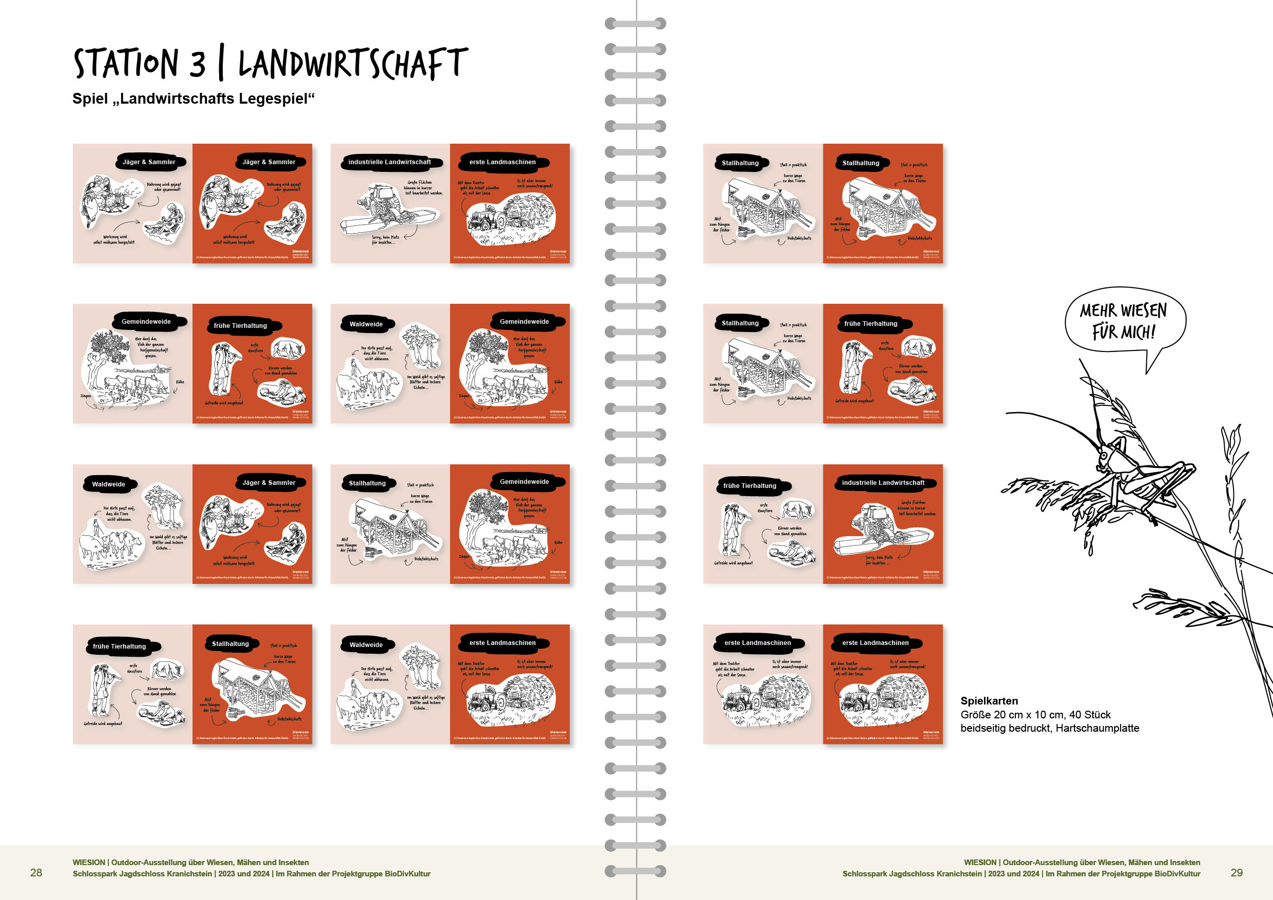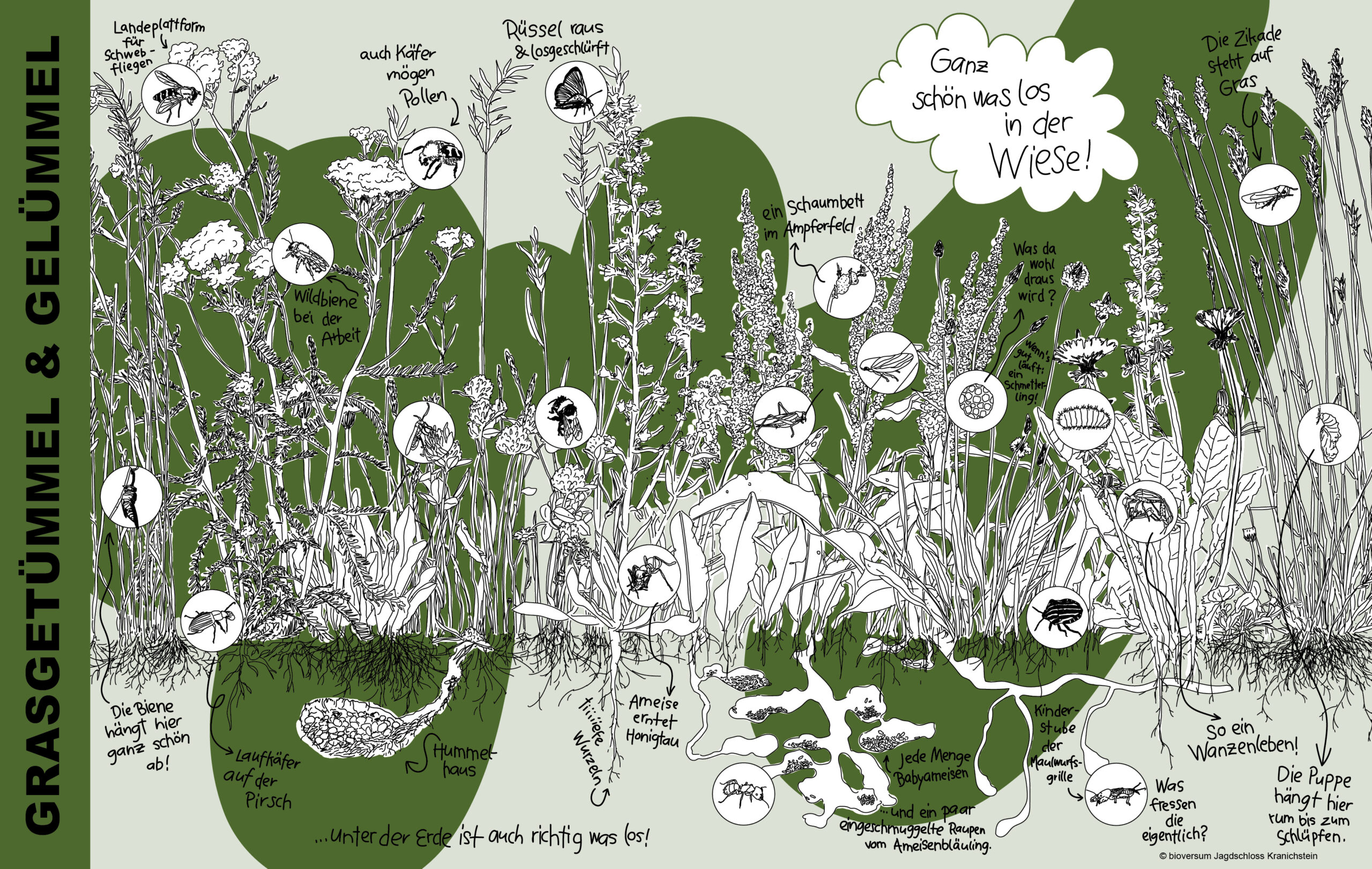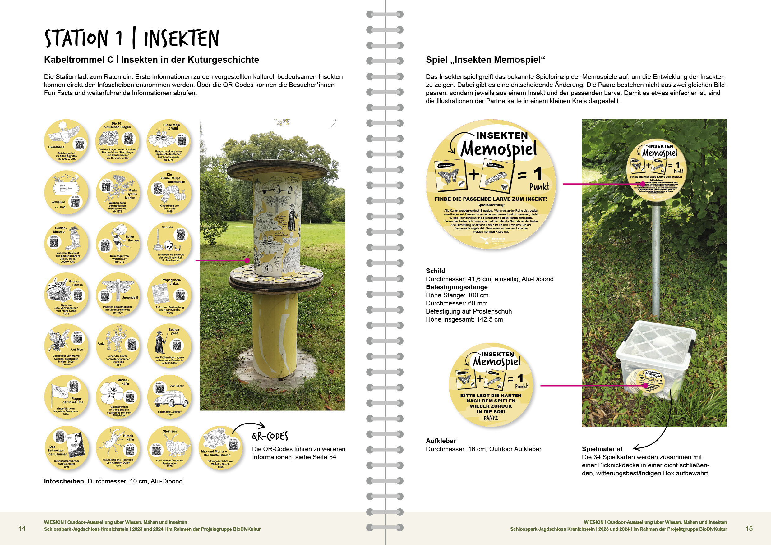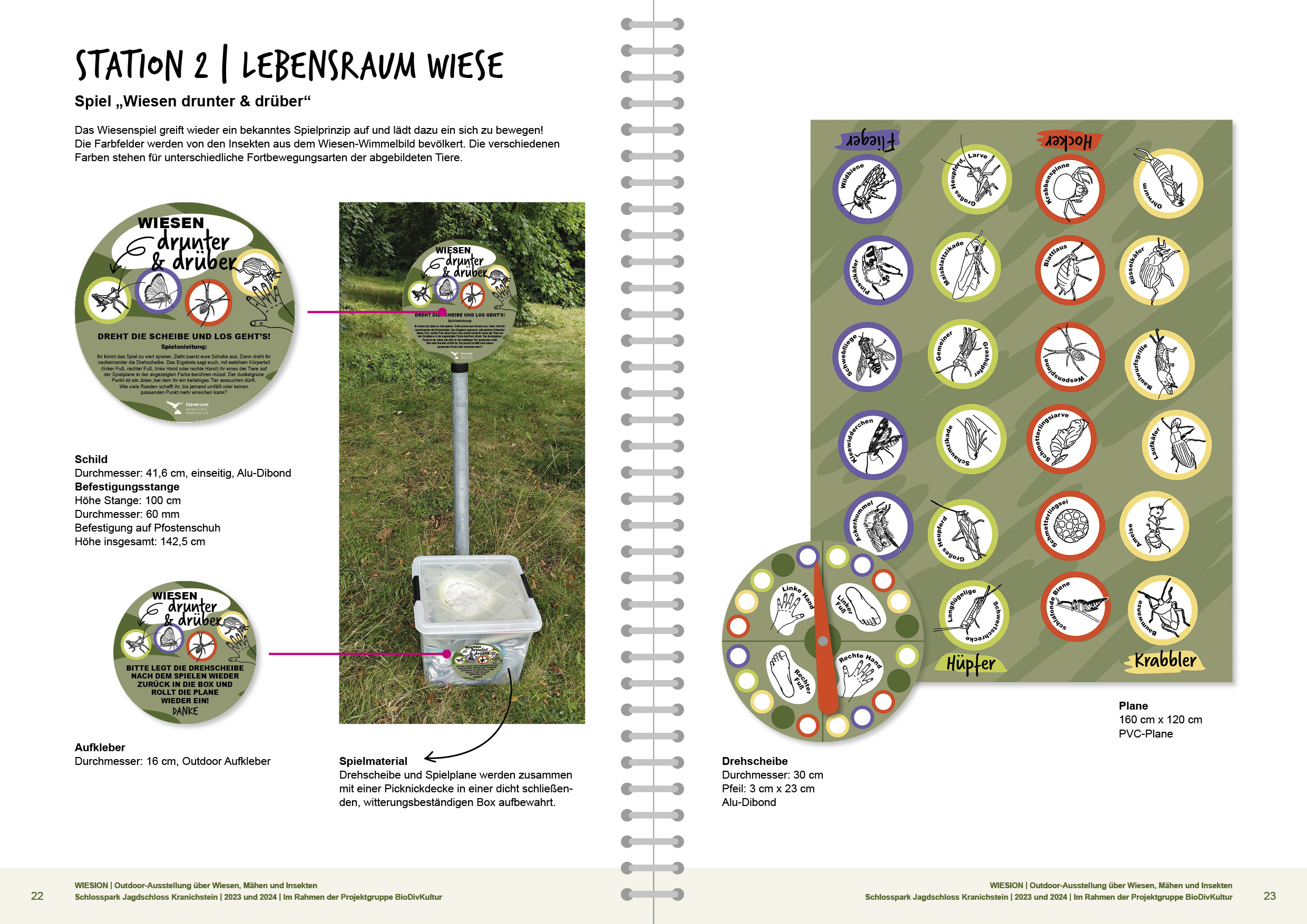 Das bioversum Jagdschloss Kranichstein als Bildungsinstitution mit langjähriger Erfahrung in der Vermittlungsarbeit entwickelte die Outdoor-Ausstellung WIESION als einen Baustein, um das Bewusstsein für Insekten, die Wiese als Lebensraum und den Einfluss der Mahd auf diesen Lebensraum greifbar zu machen und in den Fokus zu rücken. Um auch Kinder anzusprechen, gibt es zu den verschiedenen Stationen Spiele, die die jeweiligen Themen aufgreifen.