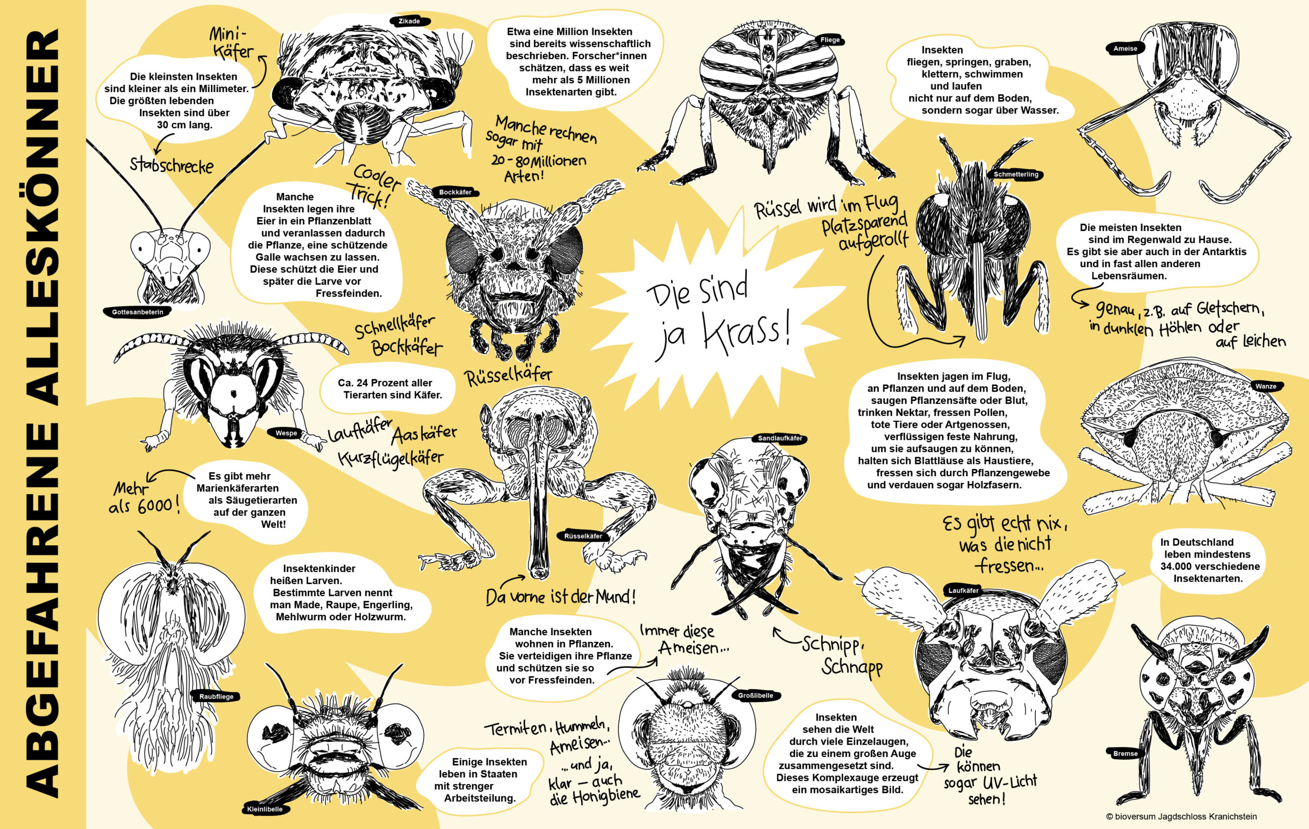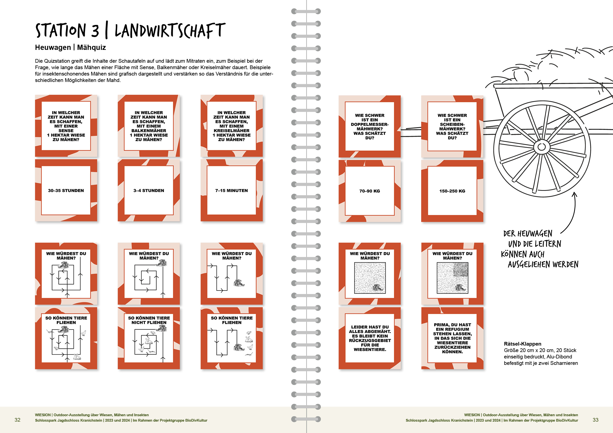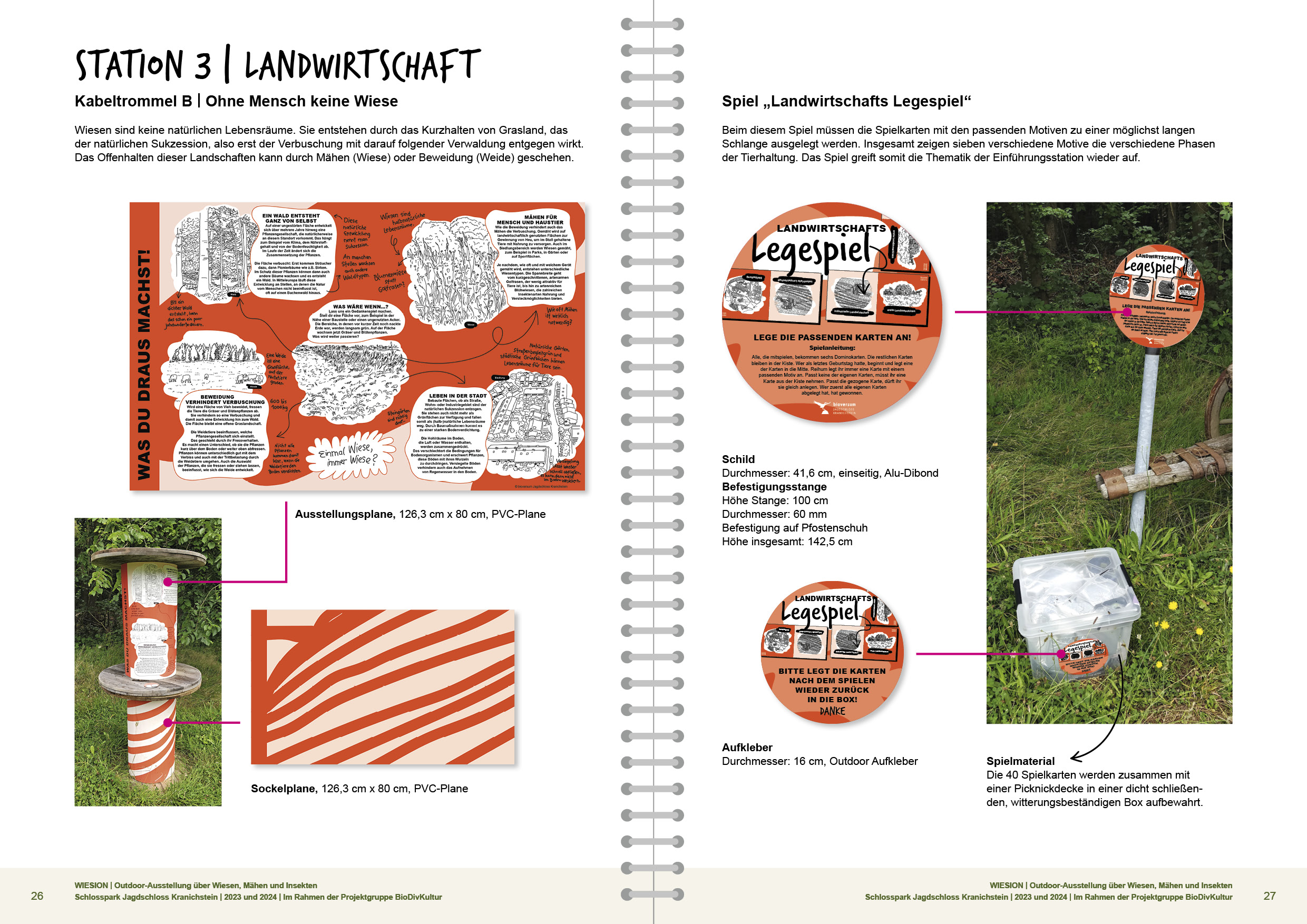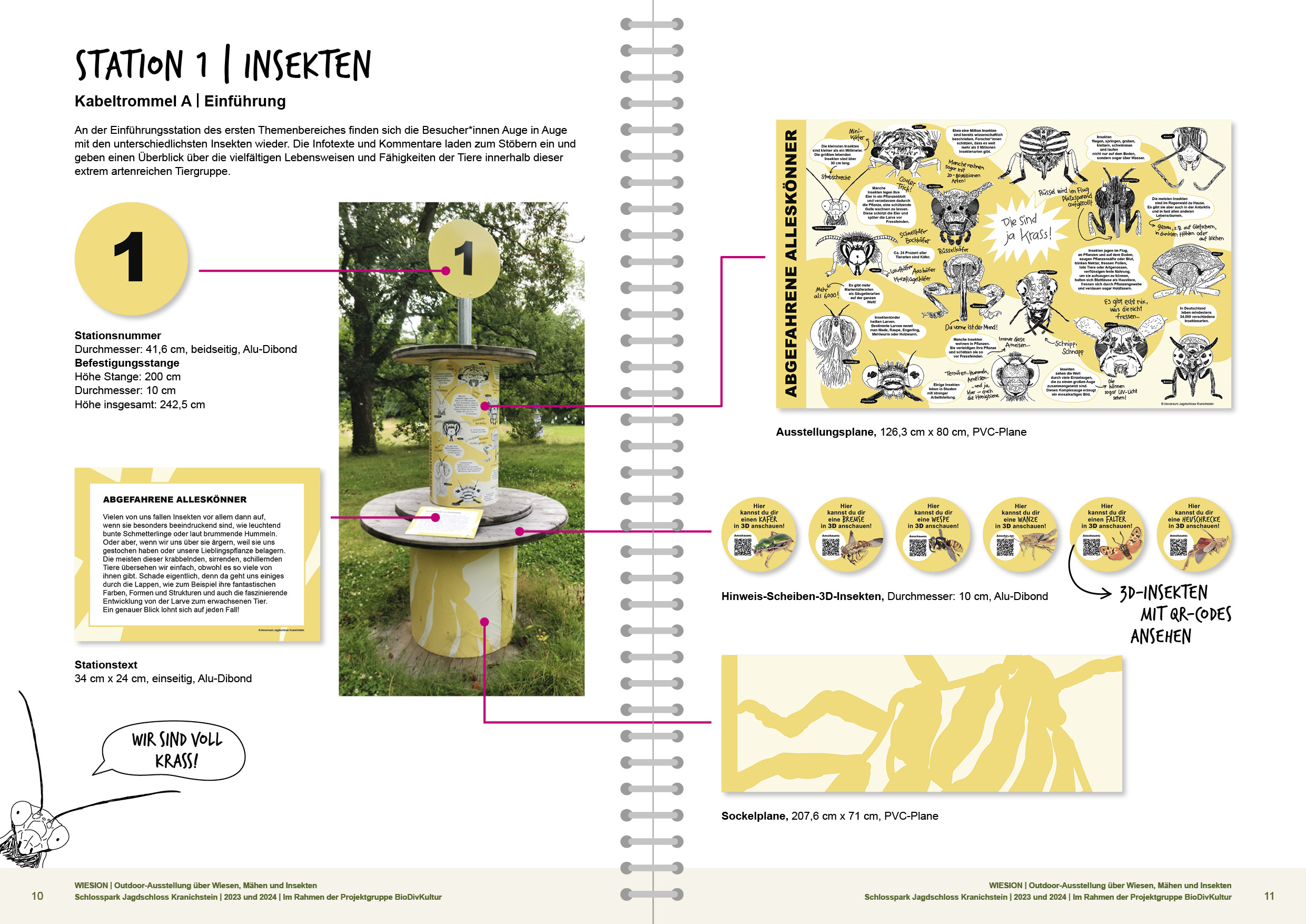 Das bioversum Jagdschloss Kranichstein als Bildungsinstitution mit langjähriger Erfahrung in der Vermittlungsarbeit entwickelte die Outdoor-Ausstellung WIESION als einen Baustein, um das Bewusstsein für Insekten, die Wiese als Lebensraum und den Einfluss der Mahd auf diesen Lebensraum greifbar zu machen und in den Fokus zu rücken. Um auch Kinder anzusprechen, gibt es zu den verschiedenen Stationen Spiele, die die jeweiligen Themen aufgreifen.