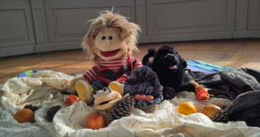 Leitung: Kerstin Hebell alias Marge mit Handpuppe Ronja und Puppenhund Lola