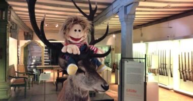 Was ist denn das? Ein riesiger Hirsch mitten im Jagdschloss? Wo kommt der denn auf einmal her? Natürlich will sich Ronja den unbedingt anschauen. Zusammen mit Marge erkundet sie die Sonderausstellung im Jagdschloss und entdeckt dabei viele lustige und spannende Dinge. Seid gespannt. Zum Schluss gibt es eine kleine aber feine, tierische Bastelei.